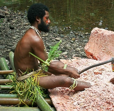 Sepik is known for its vanilla, sago (saksak), men's house (Haus tambaran), crocodiles, arts and crafts, carvings, local attire, the crocodile tattoo and the famous flora know as blue Sepik.